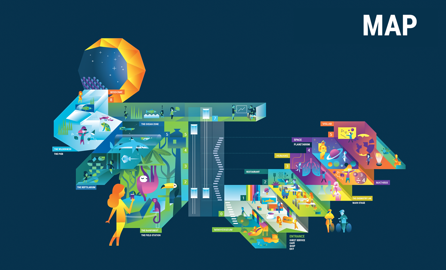 You can reach the Miniverseum (for children 0–6 years and their adults) on level 0 with the rainforest lift or the stairs from level 1.